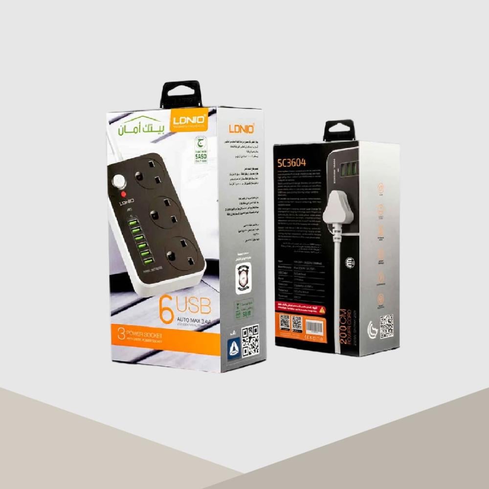 مواصفات توصيلة كهربائية LDNIO SC3604 3M :-