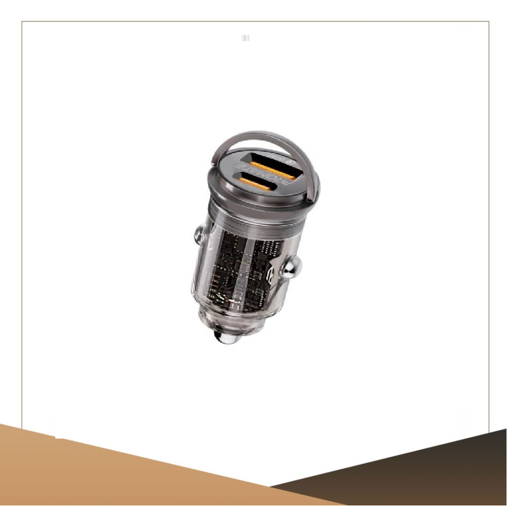 أفضل وأصغر شاحن سيارة بتصميم شفاف يتميز بمنفذ USB-C بقوة 65 واط بالإضافة إلى منفذ شحن سريع QC 3.0 بقوة 18 واط للأجهزة المتوافقة مع تصميم صغير الحجم وسهل الحمل - Promate TransDrive-65W